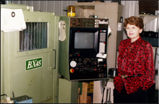 Longtime Magseal Representative in France shown with the first CNC Machine placed in service at the Warren, RI Facility.