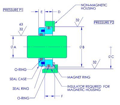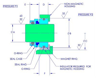 Note: MAGSEALs cannot be ordered by size alone. Even in standard configurations materials must be matched to the fluids involved. Please contact our Engineering Department at the earliest practical time during your project, and we will design a seal with materials and features suited to your operating conditions.