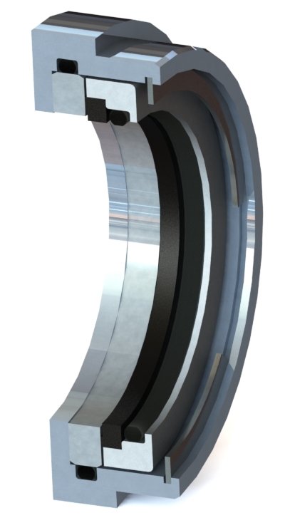 Model 30 - Large Size - For large shafts of 5 inches or greater in diameter. This seal uses magnetic inserts in a steel ring replacing the solid Alnico magnet design used in smaller seals. This seal can be installed into a magnetic housing (steel, for example).